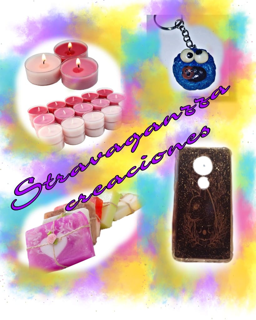 Totalmente hecho a mano, velas aromáticas, llaveros de resina y de porcelana fría, fundas personalizadas, jabones artesanales, cosméticos entre muchas cosas mas.