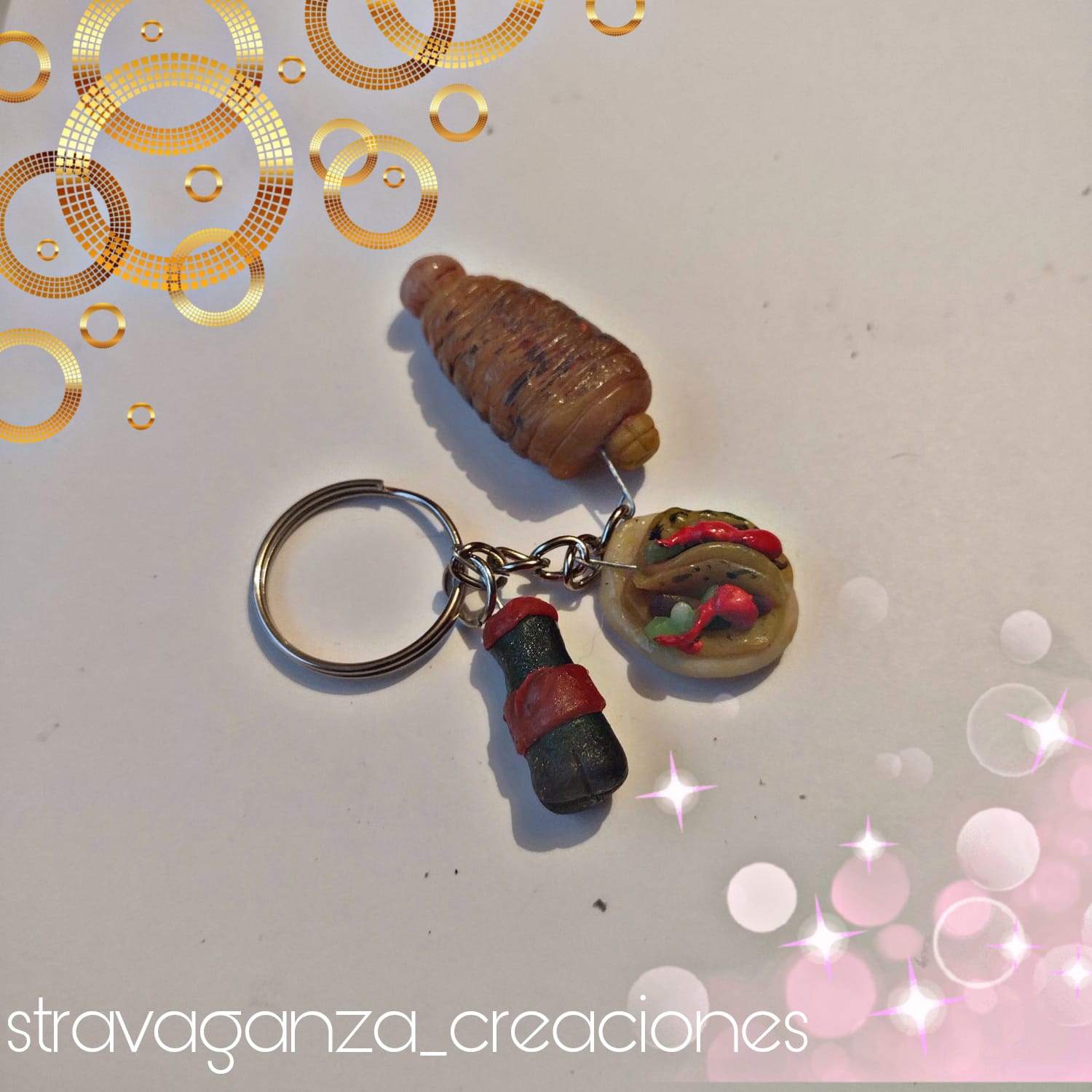 LLAVERO DE COCA COLA, CON TROMPO DE PASTOR Y TAQUITOS